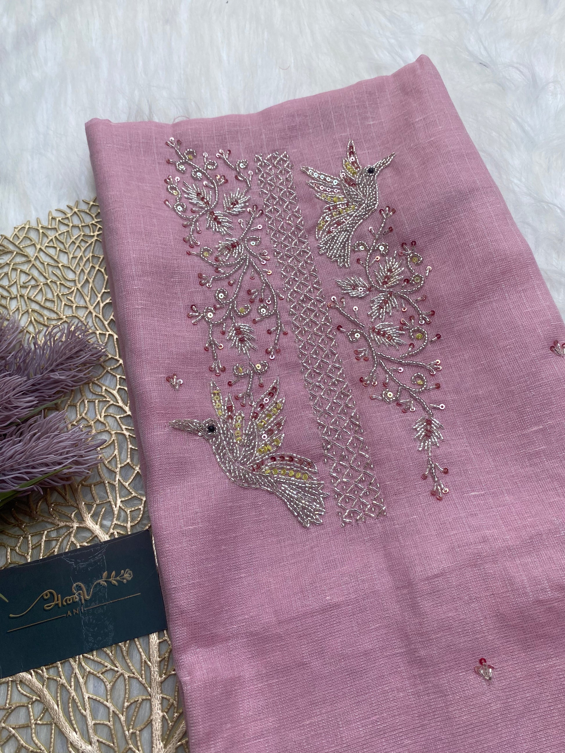 AT114 - Pink tissue with sparrow embroidery