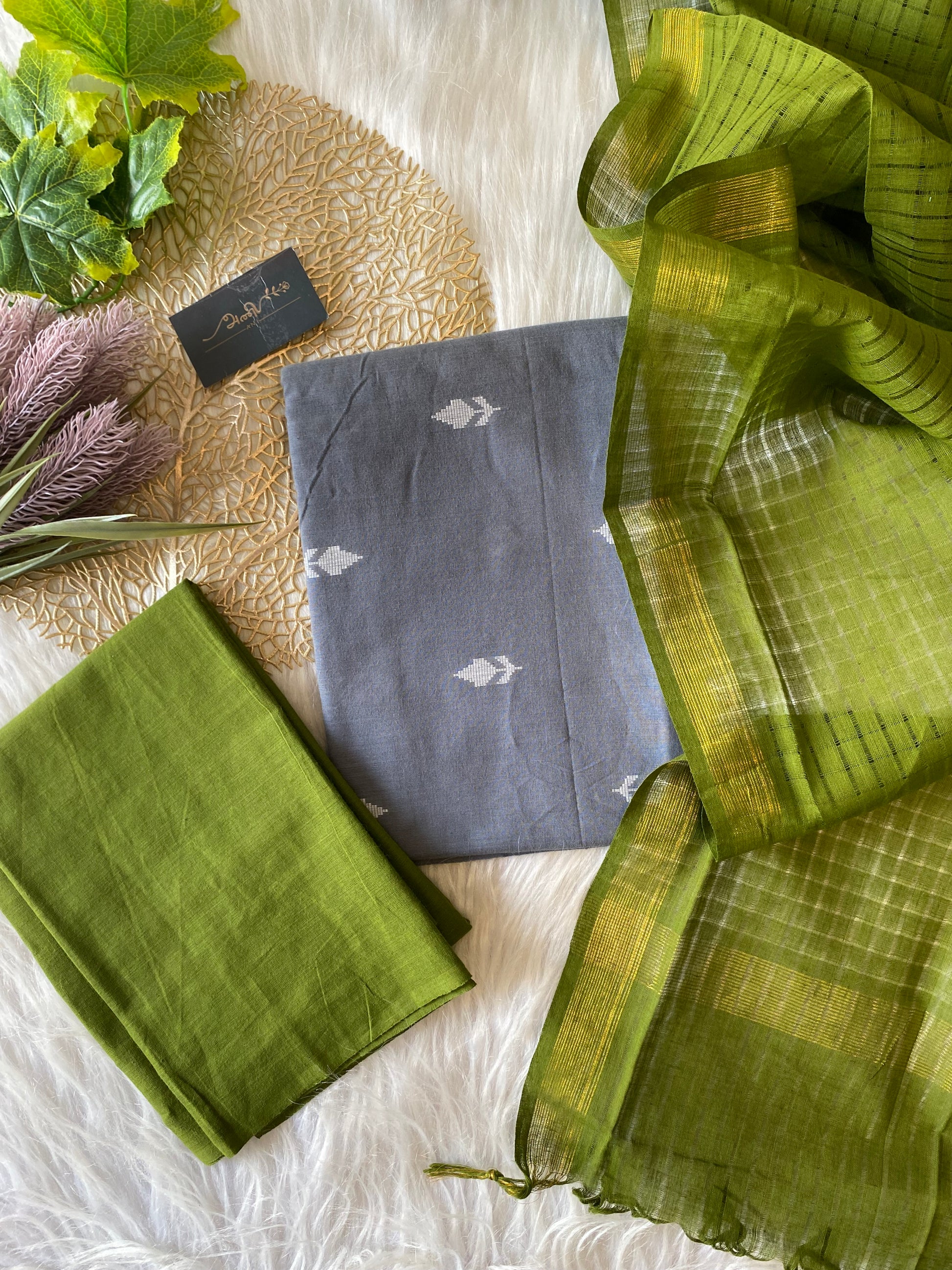 AC108- Cotton salwar with weaving butta - Grey