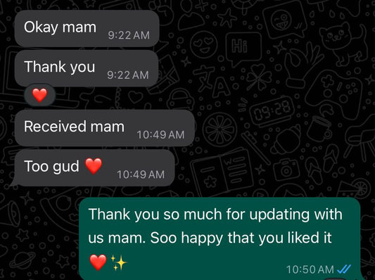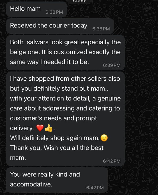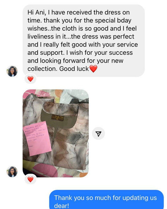Ani offers shipping across India and other countries through reliable courier services. Shipping charges will be applied at checkout. All orders processed within respective duration and you will be notified of the estimated shipping timeline in advance. Once after the shipment it will reach you 3-20 business days based on your location.